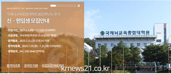 ▲ 사진=국제뇌교육종합대학원국제뇌교육종합대학원대학교(UBE, 총장 이승헌)는 2023년 후기(2학기) 신·편입생 모집을 6월 1일(목)부터 7월 7일(금)까지 진행한다.