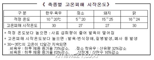 홍상표 축산과장은 “폭염, 태풍, 호우 등 자연재해에 사전에 대비할 경우 피해를 최소화 할 수 있는 만큼, 농가에서는 축산시설과 가축사양 관리 요령을 숙지하여 주시길 당부드린다”고 말했다.