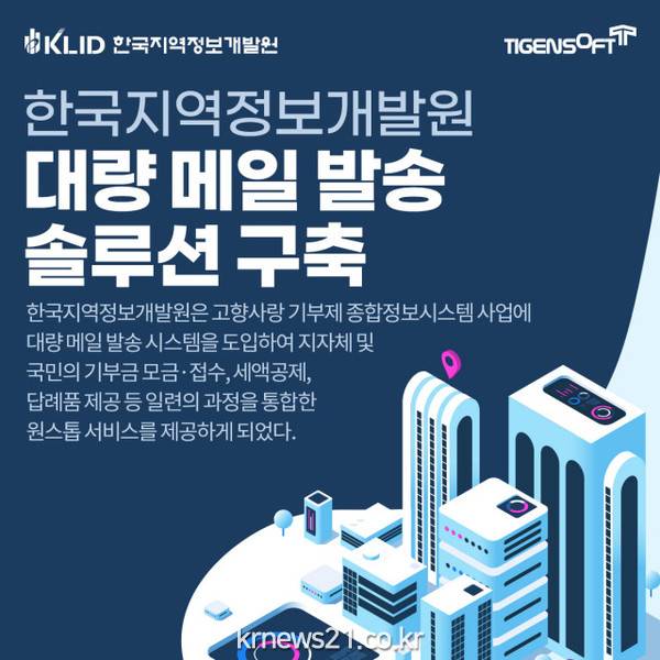 ▲ 사진=티젠소프트대량 메일 발송 솔루션 및 통합 메시징 솔루션, 설문 조사 솔루션 개발·판매 전문기업 티젠소프트(대표 고훈호)는 한국지역정보개발원 ‘고향사랑 기부제 종합정보시스템 구축 사업’에 대량 메일 발송 솔루션 ‘TG 1st EMS’를 구축했다고 밝혔다.