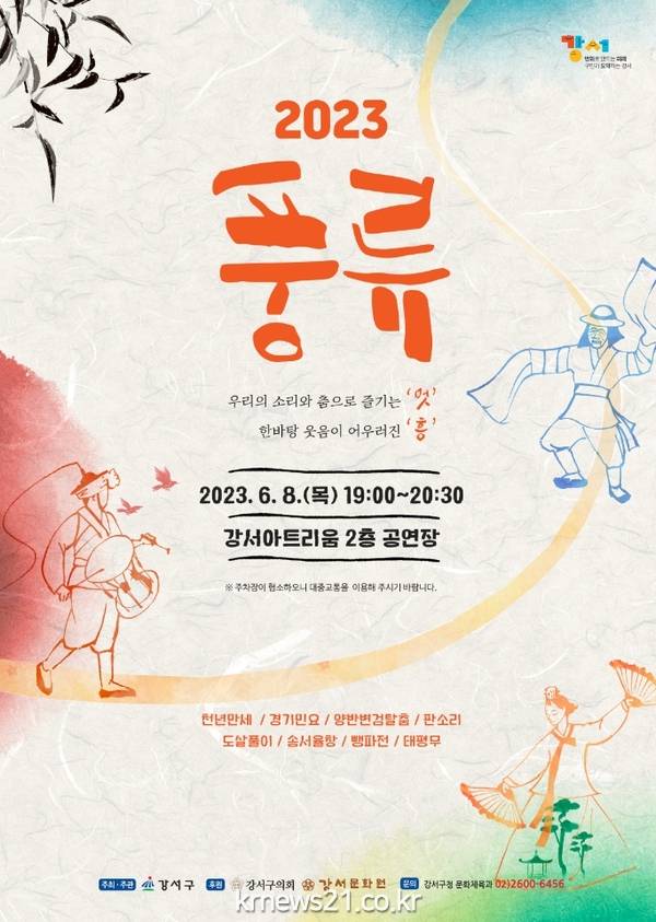 서울 강서구는 8일 오후 7시 강서아트리움 2층 공연장(아리홀)에서 전통문화예술 공연 ‘풍류 2023’을 개최한다고 밝혔다.