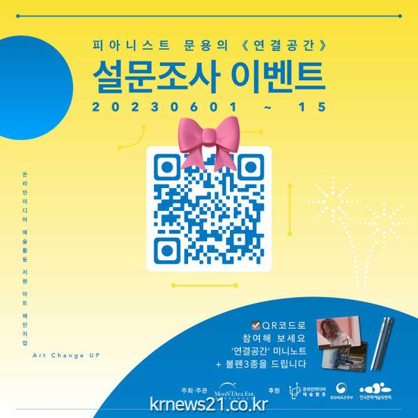 피아니스트 문용의 ‘연결공간’ 설문조사 이벤트는 2023년 문화체육관광부와 한국문화예술위원회의 ‘온라인미디어 예술활동 지원’ 사업의 후원으로 문타라엔터테인먼트가 주최·주관한다.