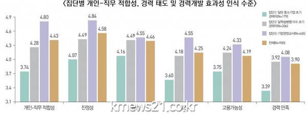 ▲ 사진=한국직업능력연구원체계적인 일터 교수·학습을 경험하는 것이 개인-직무 적합성, 경력에 대한 진정성과 도전적 성향을 높이는 데 효과가 있는 것으로 나타났다.