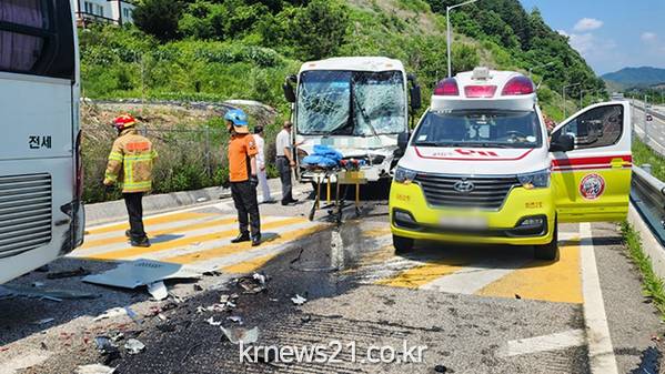 이 사고로 버스에 타고 있던 서울의 한 중학교 학생과 교사 등 30여 명이 다쳐 병원으로 옮겨졌다.