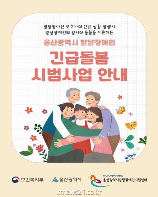 김연옥 복지여성국장은 “울산시 긴급돌봄센터 개소로 발달장애인 가족의 돌봄 부담이 경감될 것이라 기대한다.”라며 “가정과 유사한 24시간 긴급돌봄 지원체계 구축 등, 발달장애인 가족의 삶의 질이 향상될 수 있도록 지원을 아끼지 않겠다.”라고 말했다.