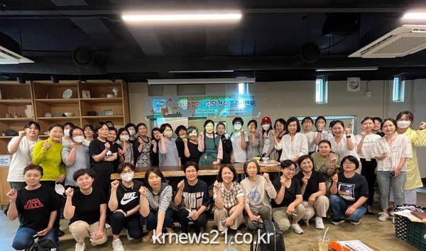 ▲ 사진=지난 6월 27일 조리원 대상으로 열린 ‘저염김치·저당간식 조리시연회’에 참여한 관계자들 모습서울시 은평구(구청장 김미경)는 지난 6월 27일 서울혁신파크 맛동에서 은평구 어린이급식관리지원센터에 등록된 어린이급식소 조리사를 대상으로 저염김치·저당간식 조리시연회를 실시했다.