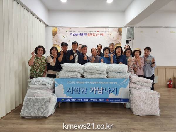 ▲ 가남읍, 『시원하고 따뜻한 가남나기』 사업 추진가남읍 지역사회보장협의체(공동위원장 이복환, 김동식)는 지난 3일 여름 대비 저소득 가구의 에너지 취약계층의 복지 향상을 도모하기 위한 『시원하고 따뜻한 가남나기』 사업의 시작을 알렸다.