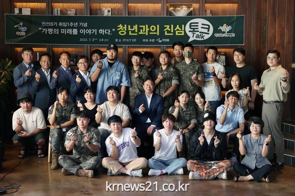 4일 군에 따르면 민선8기 취임 1주년을 맞아 청년들이 당면한 문제에 대해 함께 소통하고 청년들의 관점에서 의견을 정책으로 적극 반영하고자 서태원 군수 주재로‘가평의 미래를 이야기 하다, 청년과의 진심토크’를 진행했다고 밝혔다.