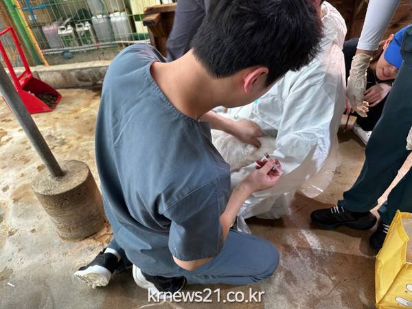 ▲ 사진=녹십자수의약품녹십자수의약품이 7월 1일 건국대학교 수의과대학 임상봉사 동아리 바이오필리아의 의료 봉사를 위해 개 인플루엔자 예방접종 백신 ‘캐니플루-맥스’를 후원했다고 4일 밝혔다.