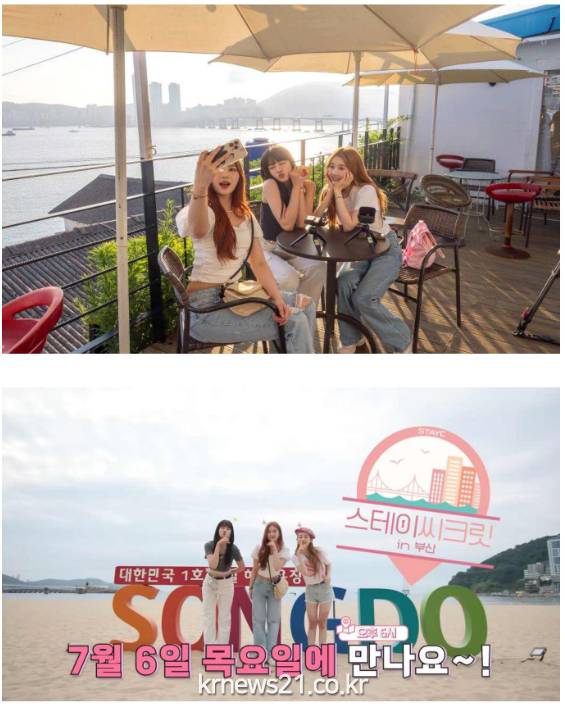 부산시(시장 박형준)와 부산관광공사(사장 이정실)는 4세대 아이돌 스테이씨(STAYC)의 특별한 부산여행 예능 「스테이씨크릿 인(in) 부산」을 오늘(6일) 부산관광 공식 유튜브 채널(비짓부산)에서 공개한다고 밝혔다.