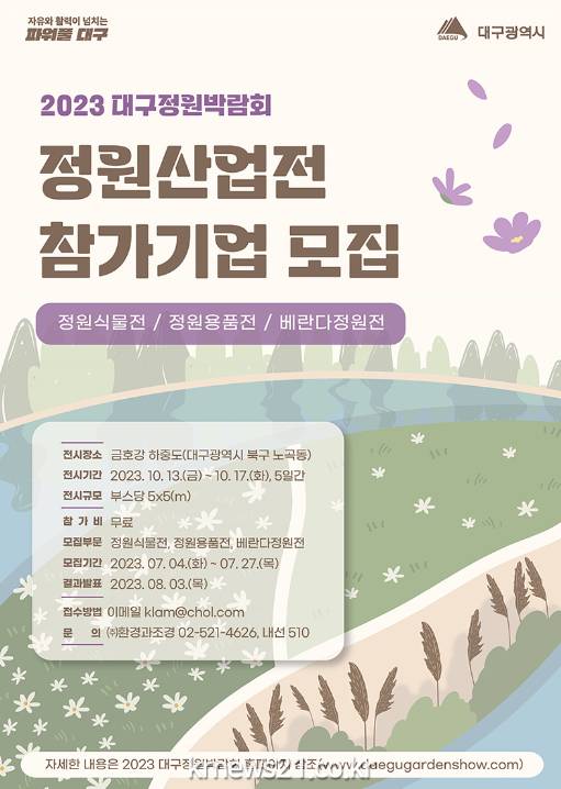 참가 접수 방법과 모집 관련 자세한 사항은 대구정원박람회 홈페이지(https://daegugardenshow.com)를 통해 확인할 수 있다.
