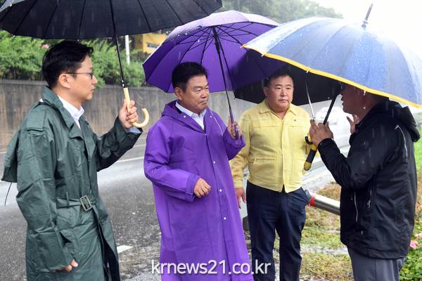 ▲ 사진=11일 오후 이필형 동대문구청장(왼쪽 두번째)이 중랑천을 점검하고 있다이필형 동대문구청장은 계속되는 장마와 집중호우에 대비하여 11일 오후 중랑천을 방문하여 현장을 살폈다. 백일홍이 개화한 중랑천변을 걸으며 관계자들과 풍수해 대책에 대해 논의하였다.