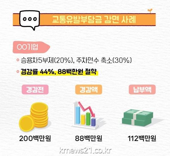 정기 모집 기간은 오는 31일까지이며, 연중 프로그램 참여를 신청하면 참여한 기간만큼 산정해 교통유발부담금을 경감받을 수 있다.