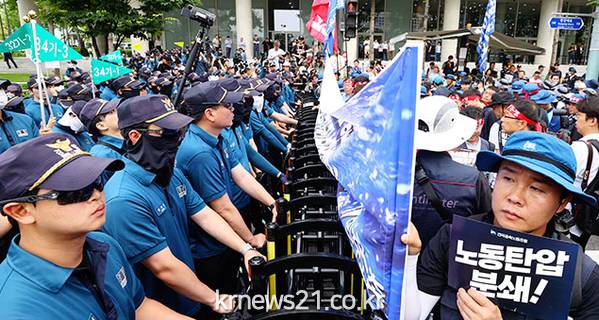 경찰은 지난 15일 집회에서 경찰관 뺨을 때린 조합원 1명은 공무집행방해 혐의로 체포해 조사하고 이튿날 일단 석방했다.