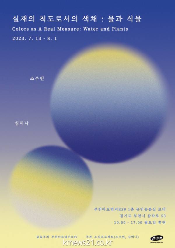벙커 1층 유인송풍실 로비 전시실에서 부천 청년 시각예술인 단체 ‘소심프로젝트’(소수빈, 심미나)의 전시가 열린다. 전시는 지역 청년예술인에게 전시 공간을 제공하는 시각예술 공간지원 사업으로 진행된다. 전시에서 두 작가는 동시대 기술문화 환경이 불러일으키는 자연과 인간 삶의 변화를 색채와 빛, 기계적 이미지로 보여준다. 소수빈 작가는 미래 생태계에서 식물이 처할 위치와 인간이 접할 새로운 환경에 의문을 갖고, 인공지능을 활용한 3D 조형물, 영상 등 기술을 적극 활용한 작품을 선보인다. 심미나 작가는 현대 사회에서 자연이 주는 심리적 치유 효과에 주목하고, 물의 이미지를 색채로 표현한 추상화를 보여준다. 자연에 대한 이해와 생태학적 상상력이 담긴 이번 전시를 통해 가까운 미래의 새로운 생태계에 대한 질문과 고민할 수 있는 계기가 될 것이다.