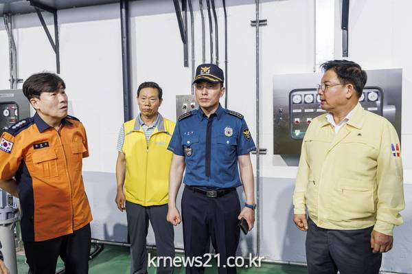 ▲ 사진=(왼쪽부터) 지난 22일, 수해취약지역 긴급점검을 위해 망원빗물펌프장을 찾은 김용근 마포서방서장, 임성순 마포경찰서장, 박강수 마포구청장오송 참사와 해외발 우편물 등으로 주민 불안이 커짐에 따라, 마포구(구청장 박강수)가 이를 해소하기 위해 ‘안전마포 핫라인’을 통한 선제적 대응 태세에 들어갔다.