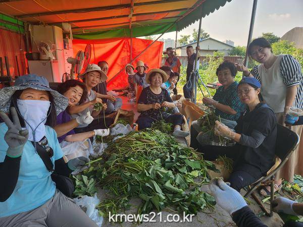 폭염특보가 내린 무더위 속에서도 고구마줄기를 정성스럽게 손질하며 이웃 사랑을 꽃피우기 위해 또 한 번의 구슬땀을 흘린 것이다.
