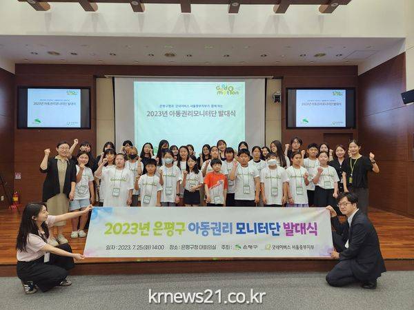 ▲ 사진=은평구, 제3기 아동권리 모니터단 발대식 개최 은평구(구청장 김미경)는 지난 25일 2023년도 은평구 제3기 아동권리 모니터단 발대식을 개최하고 활동을 시작했다고 밝혔다.