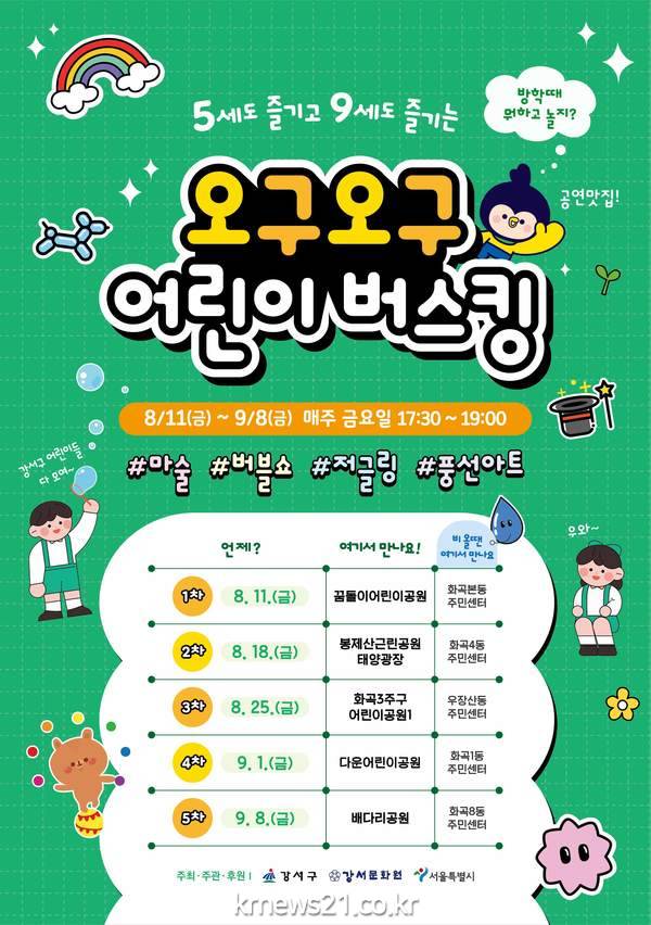 서울 강서구가 오는 11일부터 다음달 8일까지 ‘5’세도 즐기고 ‘9’세도 즐기는 ‘오구오구’ 어린이 버스킹을 운영한다.
