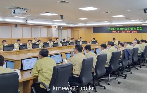 이날 보고회는 이달 21일부터 24일까지 실시되는 을지연습의 성공적인 개최를 위해 을지연습 시작에 앞서 준비상황을 종합적으로 점검하기 위해 마련됐다.