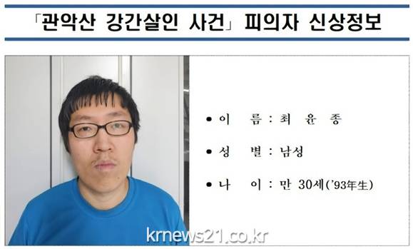 최윤종은 지난 17일 오전 서울 관악구 신림동의 한 공원과 연결된 야산 내 등산로에서 일면식이 없던 30대 여성을 때리고 성폭행한 혐의를 받는다.
