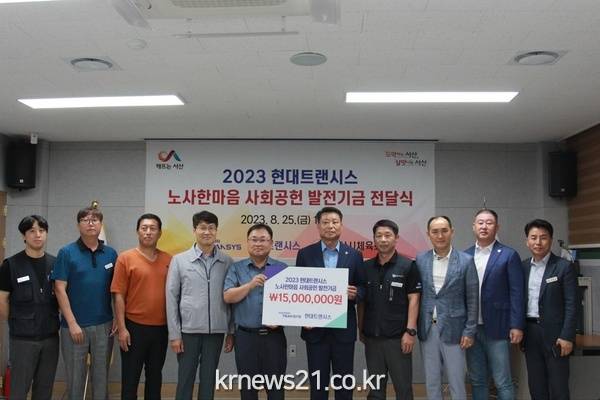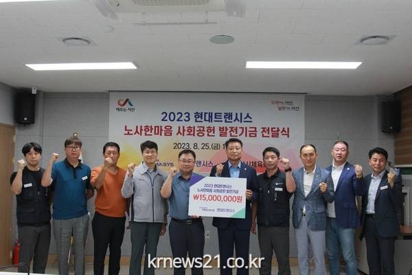 현대트랜시스의 노사 한마음 발전기금은 앞으로 서산시의 엘리트 유소년 체육 발전을 위한 기금으로 사용될 예정이다.