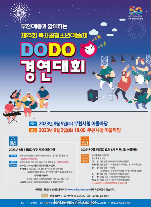 부천시(시장 조용익)는 ‘제23회 복사골청소년예술제’가 오는 9월 2일 부천시청 어울마당에서 개최된다고 밝혔다.