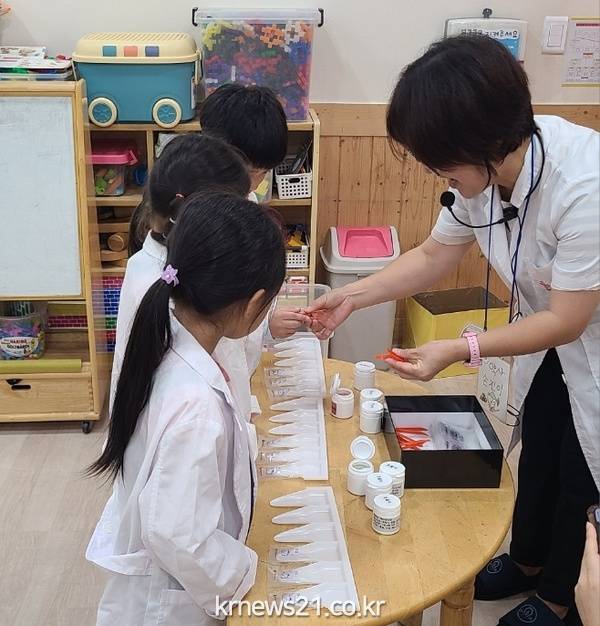사진설명 1. 부천시보건소는 지난 23일 부천시약사회와 함께 유치원생을 대상으로 의약품 안전사용 교육을 실시했다. / 2. 아이들 조제체험 참여 모습