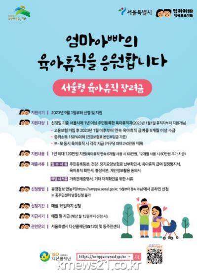 신청은 오는 9월 1일부터 서울시 출산·육아종합포털 ‘몽땅정보만능키’ 홈페이지에서 온라인으로 가능하며, 매달 15일까지 신청하면 된다.