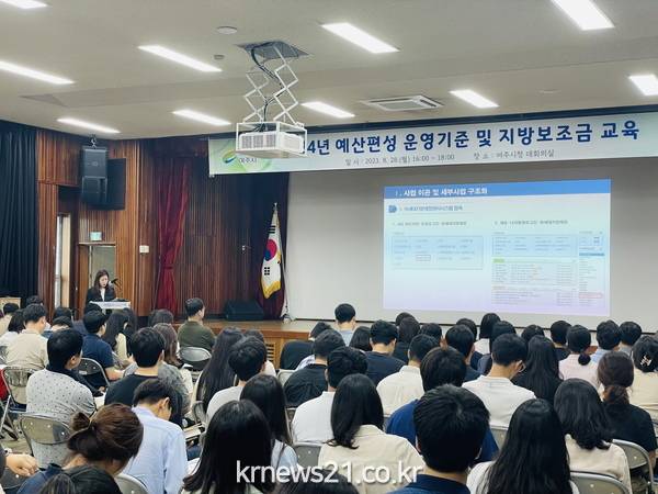 ▲ 사진=여주시여주시(시장 이충우)는 지난 8월 28일, 각 부서별 회계 및 사업 담당자를 대상으로 2024년도 예산편성 세부지침과 지방보조금 관련 교육을 실시하였다.