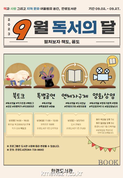 ▲ 사진=제주시한경도서관은 9월 독서의 달을 맞아 다채로운 독서문화 프로그램을 운영한다.