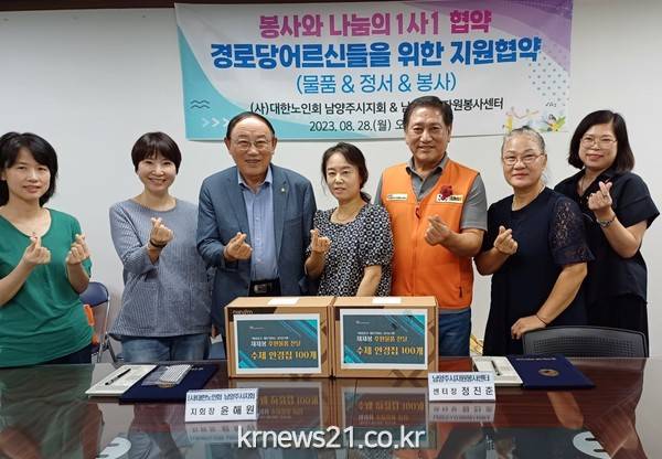 ▲ 사진=남양주시(사)대한노인회 남양주시지회(지회장 윤해원)는 지난달 28일 남양주시자원봉사센터(센터장 정진춘)와 업무 협약식을 가졌다.