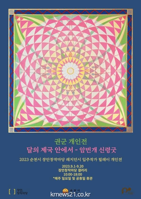 순천시(시장 노관규) 장안창작마당 갤러리에서는 오는 20일까지 입주작가 권군 개인전‘달의 제국 안에서 - 암번개 신령굿’이 펼쳐진다.