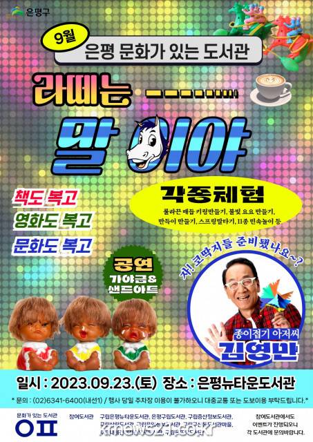 ▲ 사진=구립은평뉴타운도서관구립은평뉴타운도서관(관장 박종범)은 9월 23일 ‘문화가 있는 도서관’ 축제를 개최한다.
