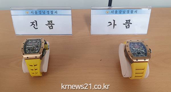 ▲ 사진=서울강남경찰서시가 40억 원에 달하는 명품시계들을 사는 척하며 ‘짝퉁’으로 바꿔치기한 일당이 검찰에 넘겨졌다.
