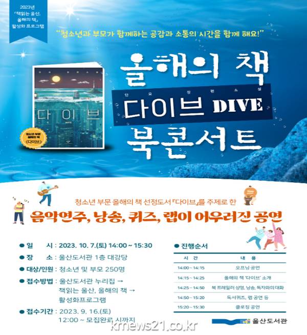 ▲ 사진=울산광역시울산도서관은 오는 10월 7일(토) 오후 2시 도서관 1층 대강당에서 2023년 청소년부문 올해의 책 ‘다이브 북콘서트’를 개최한다.