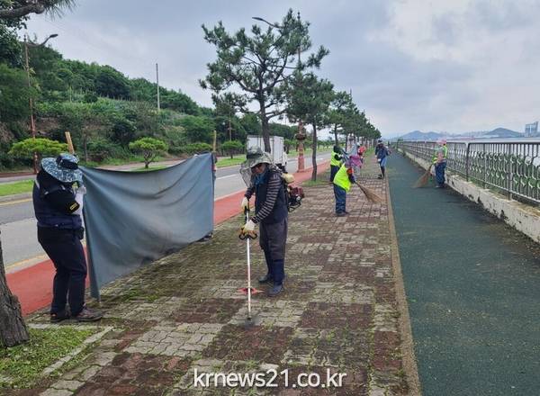 ▲ 사진=목포시목포시가 추석 명절과 전국(장애인)체전을 대비해 도로변 및 인도를 중심으로 제초작업을 실시한다.