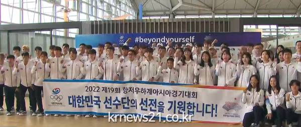 ▲ 사진=KBS NEWS 영상 캡처항저우 아시안게임에 출전하는 우리 선수단 본진이 결전지에 입성해 다시 한번 선전을 다짐했다.