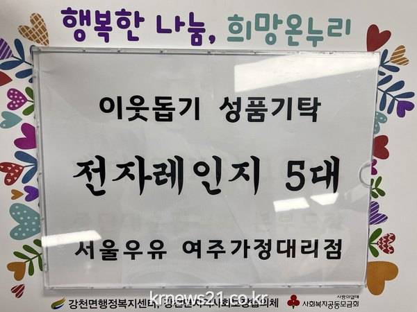 ▲ 사진=여주시서울우유 여주가정대리점(대표 최명자)은 강천면행정복지센터에 관내 취약가구를 위한 전자레인지 5대를 기탁했다.