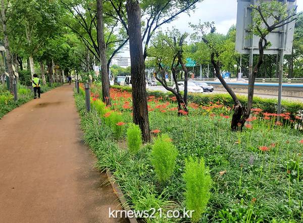 또한, 쾌적하고 아름다운 가로경관을 조성하기 위한 화단 정비작업도 시행하는데, 중동교, 희망교 등 신천의 주요 교량을 포함한 49개소의 꽃거리에 백일홍, 메리골드 등 계절 꽃 20종 약 75,500포기를 식재한다.