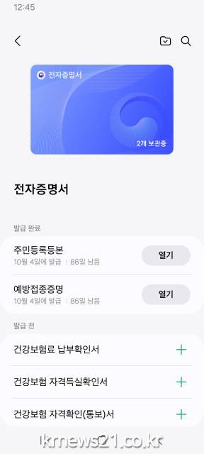 또한, 발급받은 전자증명서는 최초 발급일 후 90일간 유효하다. 발급받은 증명서는 비밀번호 설정 기능을 통해 사용의 스마트폰 단말기에 안전하게 보관할 수도 있다.