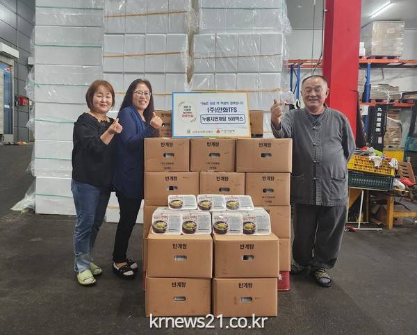 ▲ 사진=남양주시남양주시 진접읍 소재 ㈜인화TFS(대표 안점례)는 지난달 27일 관내 어려운 이웃을 위해 3천6백만 원 상당의 누룽지 반계탕 500박스를 남양주시복지재단(대표이사 심우만)에 전달했다.