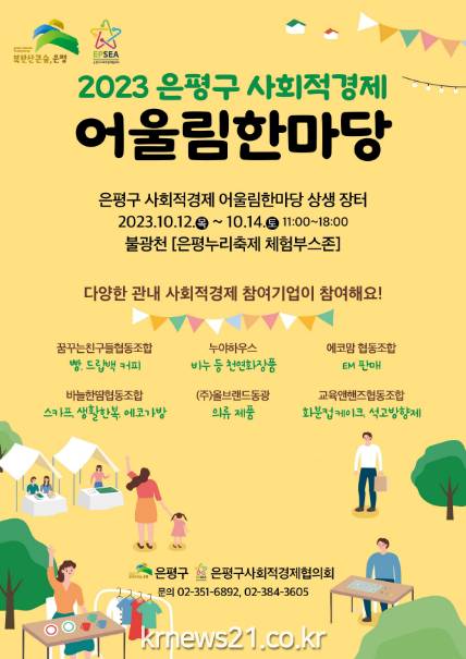 ▲ 사진=은평구서울 은평구(구청장 김미경)가 오는 12일부터 14일까지 3일간 불광천에서 ‘2023 은평구 사회적경제 어울림한마당’을 개최한다고 밝혔다.