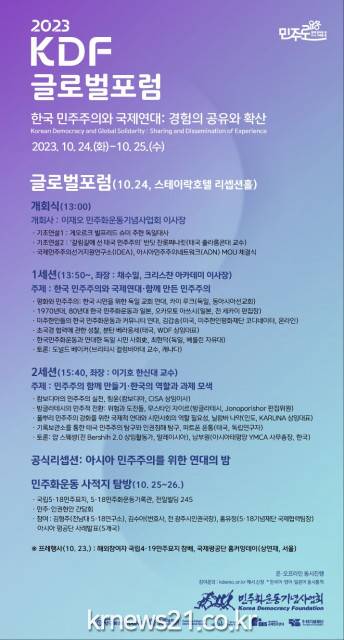 이번 행사는 ‘한국 민주주의와 국제연대: 경험의 공유와 확산’을 주제로 개최된다. 24일 스테이락호텔에서는 글로벌포럼이, 25일에는 서울글로벌센터에서 학술대회가 진행된다.