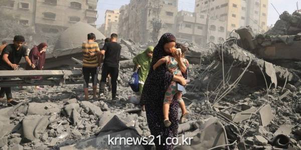 ▲ [SHUUD.mn=뉴스21통신.무단전재-재배포 금지]이스라엘군의 가자지구 공습으로 42만 명이 넘는 이재민이 발생했다고 유엔이 밝혔다.