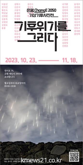 서울 은평구(구청장 김미경)가 오는 23일부터 11월 18일까지 기상기후사진전 ‘기후위기를 그리다’를 개최한다고 밝혔다.