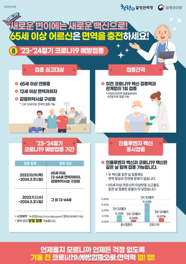 인플루엔자 예방접종(65세 이상, 13세 미만, 임산부는 무료)은 지난 10월 11일부터 시작됐으며 10월 19일부터는 코로나19 예방접종과 동시 접종도 가능하다.