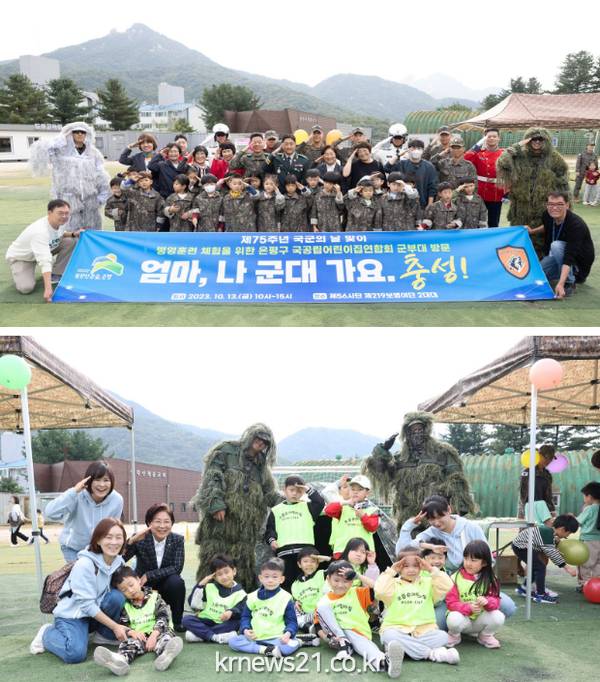 ▲ 사진=은평구은평구(구청장 김미경)가 제75주년 국군의 날을 맞아 지난 13일 관내 국공립 어린이집 24개소 원아 400여 명이 경기도 양주에 위치한 제56사단 제219보병여단, 2대대를 방문했다고 밝혔다.