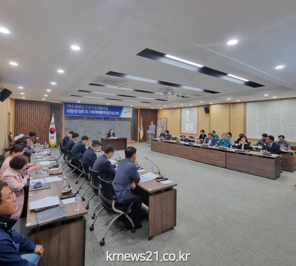 ▲ https://www.yeonggwang.go.kr/영광군영광군은 지난 26일 군청 2층 소회의실에서 강종만 영광군수 주재로 군의회 의원, 부군수, 실과소장, 용역사 등 30여 명이 참석한 가운데 백수 돔배섬 관광자원개발사업 타당성 검토 및 기본계획 용역 중간보고회를 개최하였다.