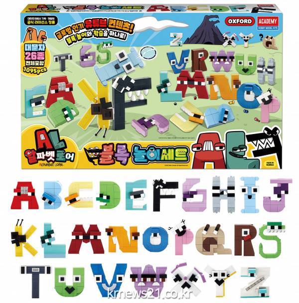 △‘알파벳 로어 블록놀이세트’는 국내 최고의 블록업체인 옥스포드사와 아카데미과학이 협업해 개발된 제품으로, 알파벳 로어 대문자 A부터 Z까지 전체 26종을 포함한 총 1095pcs의 블록 세트다. 국내에서 생산된 고품질의 블록을 사용해 유튜브 애니메이션 캐릭터를 블록으로 최대한 재현했다.