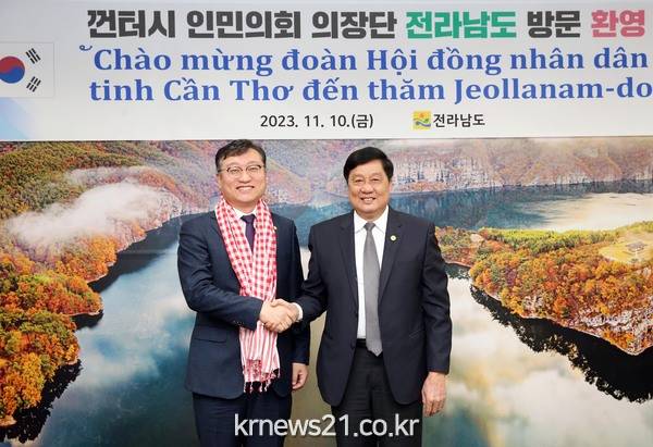 고위급 회담에서 명창환 부지사는 “전남도와 껀터시는 지난 12년 우호교류를 한 뒤 매년 다양한 교류를 추진해왔다”며 “이번 껀터시 고위급 방문을 계기로 관광, 농업, 에너지 등 분야에서 다양한 협력을 통해 두 지역 공동 발전에 기여하길 바란다”고 말했다.